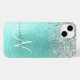 Teal Brushed Metal Silver Glitter Monogram Name Case-Mate iPhone Case