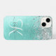 Teal Brushed Metal Silver Glitter Monogram Name iPhone Case