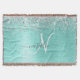 Teal Brushed Metal Silver Glitter Monogram Name Throw Blanket