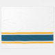 This fun colourful design features bright golden yellow orange floating racing stripes highlighting a wide vibrant dark ocean teal bottom edge horizontal stripe against a white background.