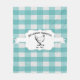 Keep warm on chilly nights with this rustic Teal Buffalo Plaid Farm Chicken Fleece Blanket. Blanket design features this charming farm animal on an elegant tag and custom text for you to personalize with your family name against a gingham pattern background. Additional home decor items available with this design.