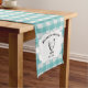 Add a country touch to your dining decor with this rustic Teal Buffalo Plaid Farm Chicken Table Runner. Table runner design features this charming farm animal on an elegant tag and custom text for you to personalize with your family name against a gingham pattern background. Additional home decor items available with this design.
