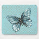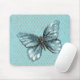 Teal Butterfly in Chain Link Fence Design Mouse Pad