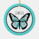 Teal Butterfly Polka Dots Personalized Christmas Ceramic Ornament