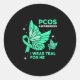 Teal Butterfly Ribbon Pcos I Wear Teal For Me Classic Round Sticker