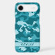 Customize this teal camouflage iPhone 17 air case with your name in a trendy modern CAP font in dark teal on light teal. It's so modern, girly and trendy! Perfect for any country girl!