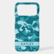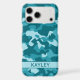 Customize this teal camouflage iPhone 17 pro max case with your name in a trendy modern CAP font in dark teal on light teal. It's so modern, girly and trendy! Perfect for any country girl!