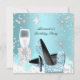 Glitter Light Teal Blue High Heel Shoes, Blue Champagne Birthday Party, Teal Pearl Snowflakes, Teal White Feathers, White Silver Sparkle, Feathers, Birthday Party for any age. Party for women or a girl. Invitation Formal Use for any event invitation Customize with your own details and age. Template for Sweet 16, 16th, Quinceanera 15th, 18th, 20th, 21st, 30th, 40th, 50th, 60th, 70th, 80th, 90, 100th, All Occasions Fabulous Elegant Events for Women, Girls, Party Invites for all ages, just customize to the age you want! Affordable, Cheap but classy! Zizzago created this design PLEASE NOTE all images are NOT Silk Diamonds Jewels or real Bows!!