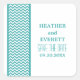 Chic and modern Chevron Border Save the Date Stickers featuring a simple chevron pattern border in turquoise and white. This stylish design will set the tone for an elegant wedding. Easy to customize, simply add your wedding details in the text fields provided. Click "Customize It" to find more personalization options.