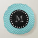 Teal Chevron Pattern | Black Monogram Round Pillow