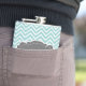 Enjoy your favourite spirits when you're away from home with a personalized Teal Chevron Flask. Flask design features a teal chevron background and an ornate grey tag to personalize with your name and monogram. Additional items available with this design as well. Please contact me directly for assistance with personalization.