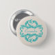 Elegant and sophisticated Chic Damask Button featuring a soft beige background and a stylish damask flourish embellishment in turquoise. This modern design is easy to customize with your own text. Click "Customize It" to find more personalization options.