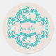 Elegant and sophisticated Chic Damask Stickers featuring a soft beige background and a stylish damask flourish embellishment in turquoise. This modern design is easy to customize with your own text. Click "Customize It" to find more personalization options.