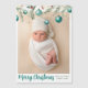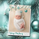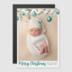 Cute teal ornaments with beautiful watercolor holiday leaves dangle over your favourite vertical holiday photograph. Elegant Merry Christmas photo magnet card with pretty decorations.