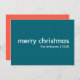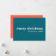 Simple, stylish "merry christmas" quote greeting card with modern typography in white on a steel blue background in a minimalist 'scandi' scandinavian design style. The card can be easily personalized with your own holiday greeting, family name and year to make a truly bespoke christmas holiday card for the festive season! The back of the card is in a complementary tomato coral red for a fun festive feel.