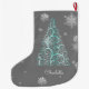 Add a festive touch to your fireplace mantle this holiday season with a Teal Christmas Tree and Snowflakes Stocking. Stocking design features a vibrant artistic Christmas tree with falling snowflakes and a dark grey background with a space you can add your name for personalization. Additional gift and holiday items available with this design as well.