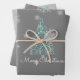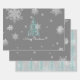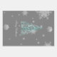 Teal Christmas Tree and Snowflakes Wrapping Paper Sheet