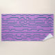 This beach towel has an art deco design that looks like likes on a circuit board. The lines are running vertically in teal on a field of purple. Want a different colour? Message me.
