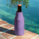 This bottle cooler has an art deco design that looks like likes on a circuit board. The lines are running vertically in teal on a field of purple. Want a different color? Message me.