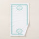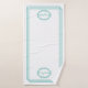 Personalize a bath towel with your name in floral ovals on each end of the towel. The towel also features three rectangles as a border for the whole towel. The design is a teal colour on a white towel background. If you need help personalizing please message me.