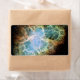 A mosaic image of the Crab Nebula in intense shades of turquoise, teal, yellow and orange, taken by the Hubble Space Telescope.