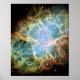 A mosaic image of the Crab Nebula in intense shades of turquoise, teal, yellow and orange, taken by the Hubble Space Telescope.