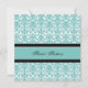 Custom 16th Birthday party invitations in elegant turquoise blue, black and white classic floral damask pattern. Add your name and party details for a unique and stylish sweet 16 birthday party invitation.