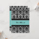 Custom Bat Mitzvah party invitations in elegant turquoise blue, black and white classic floral damask pattern. Add your name and party details for a unique and stylish Bat Mitzvah party invitation.