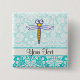Teal Damask Pattern Dragonfly 2 Inch Square Button