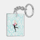 Teal Damask Pattern Ice Skating Keychain