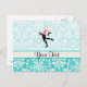 Teal Damask Pattern Ice Skating Postcard