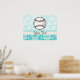 Teal Damask Pattern Softball Poster