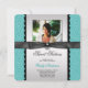 Black and teal blue damask bow picture personalized sweet sixteen birthday party invitation.