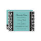 Wedding save the date announcement postcards in elegant turquoise blue, black and white floral damask pattern, stylish and fully customizable with your wedding details. Also available in many other products for the wedding party.