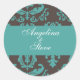 Teal damask on dark brown background, stickers coordinating with my Floral Damask wedding suite. (also available in several different colours).