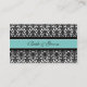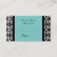 Wedding table place setting cards in elegant turquoise blue, black and white classic floral damask pattern, also available in many matching wedding products, contact us to request a colour change or custom design.