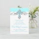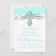 Teal Diamond Cross Girls Teal Blue First Communion Invitation