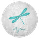 Add an elegant touch to cabinetry or furniture with a Teal Dragonfly Personalized Ceramic Pull. Pull design features a colourful dragonfly, a soft white leafy vine against a light grey grunge damask background with an area to personalize with your name. Additional gift items available with this design as well as a variety of colours.