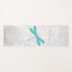Create your own unique yoga mat with a Teal Dragonfly Personalized Yoga Mat. Mat design features a colourful dragonfly, a soft white leafy vine against a light grey grunge damask background with an area to personalize with your name. Additional gift items available with this design as well as a variety of colours.