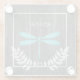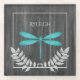 Teal Dragonfly Rustic Personalized Glass Coaster