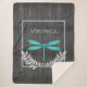 Teal Dragonfly Rustic Personalized Sherpa Blanket