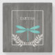 Teal Dragonfly Rustic Personalized Stone Coaster