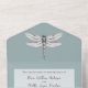Invite guests to your upcoming wedding with this Teal Dragonfly All in One Wedding Invite. Invite design features a simple and elegant dragonfly with elegant script and modern typography for the bride and grooms' names and wedding details. Perfect for the couple having a dragonfly theme wedding. Additional wedding stationery and supply available with this design as well.