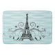 Add a touch of Paris to your bath with this vibrant and unique bath mat featuring the Eiffel Tower embellished with elegant flourishes against a teal wavy background. Matching bath decor available with this design as well.