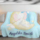 Teal Elephant Crescent Moon Personalized Name Fleece Blanket