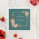 Teal Fall Leaves Napkins. Add a layer of elegance to your place settings with coordinating paper napkins from the Teal Terracotta Fall Leaves Floral Collection. Featuring delicate watercolor florals and foliage in warm terracotta, burnt orange, beige, and copper tones against a teal background, these napkins enhance your table décor while maintaining a practical and polished look. Personalize them to add charm and continuity to your reception setup.
