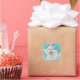 A modern, floral sticker with abstract flowers in teal and white against a light grey background. The card is easy to customize with your wording, font, font colour and paper shape options.