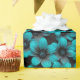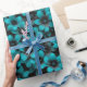 Wrap gifts in dramatic, modern style with this teal floral wrapping paper, featuring bold teal and turquoise flowers set against a deep black background.