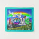 Teal Frame Peace and Love Art Tapestry