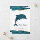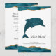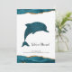 Our colourful moving announcement features a sparkly teal glitter dolphin leaping out of the gold and teal agate "water" below. Between the dolphin and the teal ocean border at the bottom of the card is your new address announcement and location. On back of this unique card is your personal message to family and friends, along with your new home address, phone number and additional information you'd like them to know. All text can be easily revised on the personalization template. This design is on a postcard, flat card with envelope, budget card, and coordinating return address label.